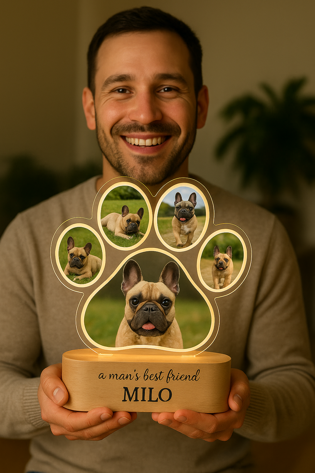 A custom night light crafted from the outline of your pet’s photo, creating a warm glow that captures their unique shape and spirit. A simple yet meaningful way to honor the joy they bring.